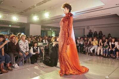 まず最初に、真っ赤なドレスを着たモデルさんが登場