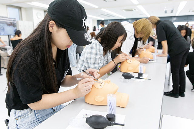 ▲-美容業界の最前線で活躍する卒業生のデモンストレーションを目の前でみれる!-