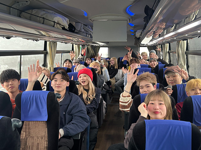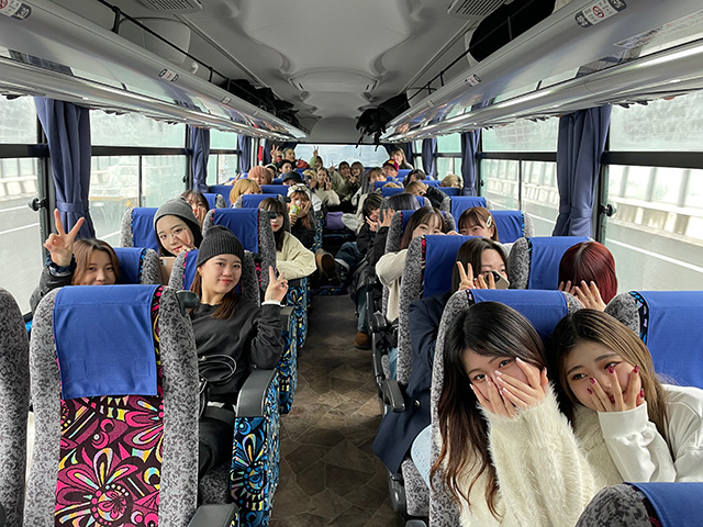 バスの中でもハイテンション![]()