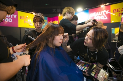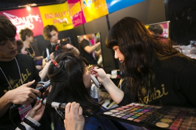 KANBI生はご来場くださったみなさんにヘアメイクとネイルを施術させていただきました