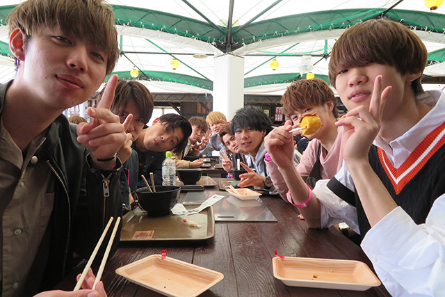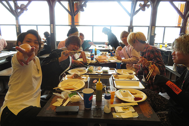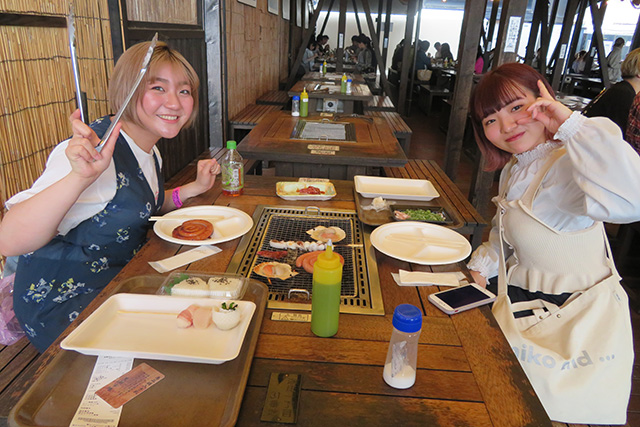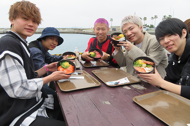 気持ちの良いテラス席で海鮮丼を堪能する学生たち![]()
