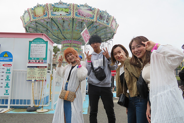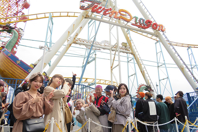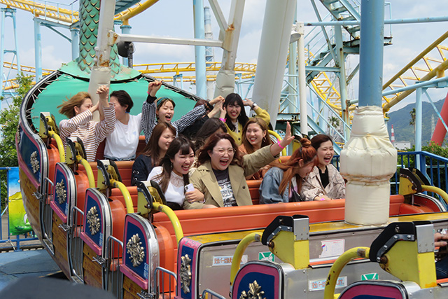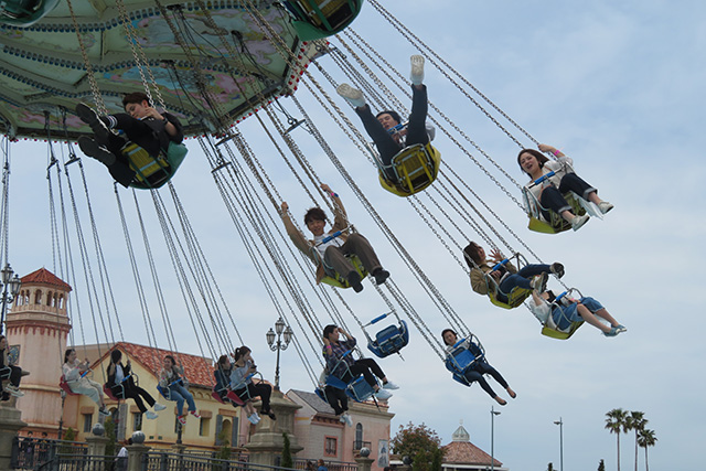 船型のアトラクションで悲鳴をあげている人や、
