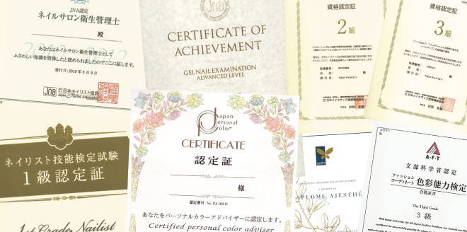 就職はもちろん、サロンでのステップアップや独立、転職のチャンスもぐんと広がって、美容業界で活躍する強い武器になります。KANBIは各種資格の認定校だから、校内で受験できる資格試験も充実しています。